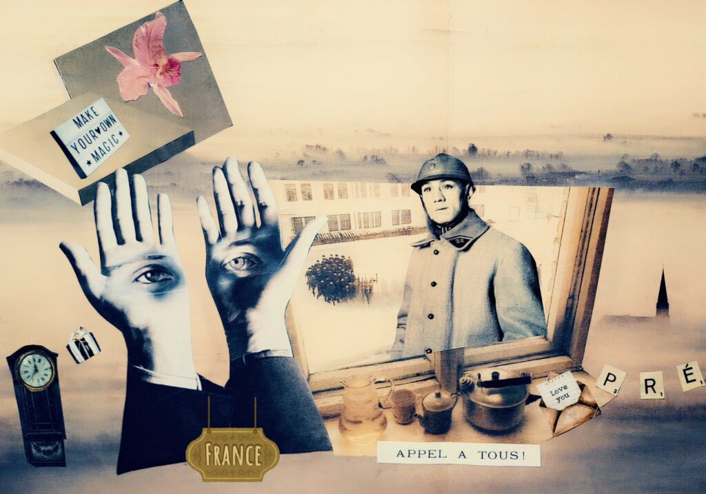 Installé aux portes de Paris, cet artiste autodidacte a fait du collage bien plus qu’un simple passe-temps : une véritable vocation. Ce qui avait commencé comme un hobby s’est progressivement imposé comme une activité à plein temps, portée par une inspiration profondément ancrée dans l’onirisme, le surréalisme et les représentations symboliques.