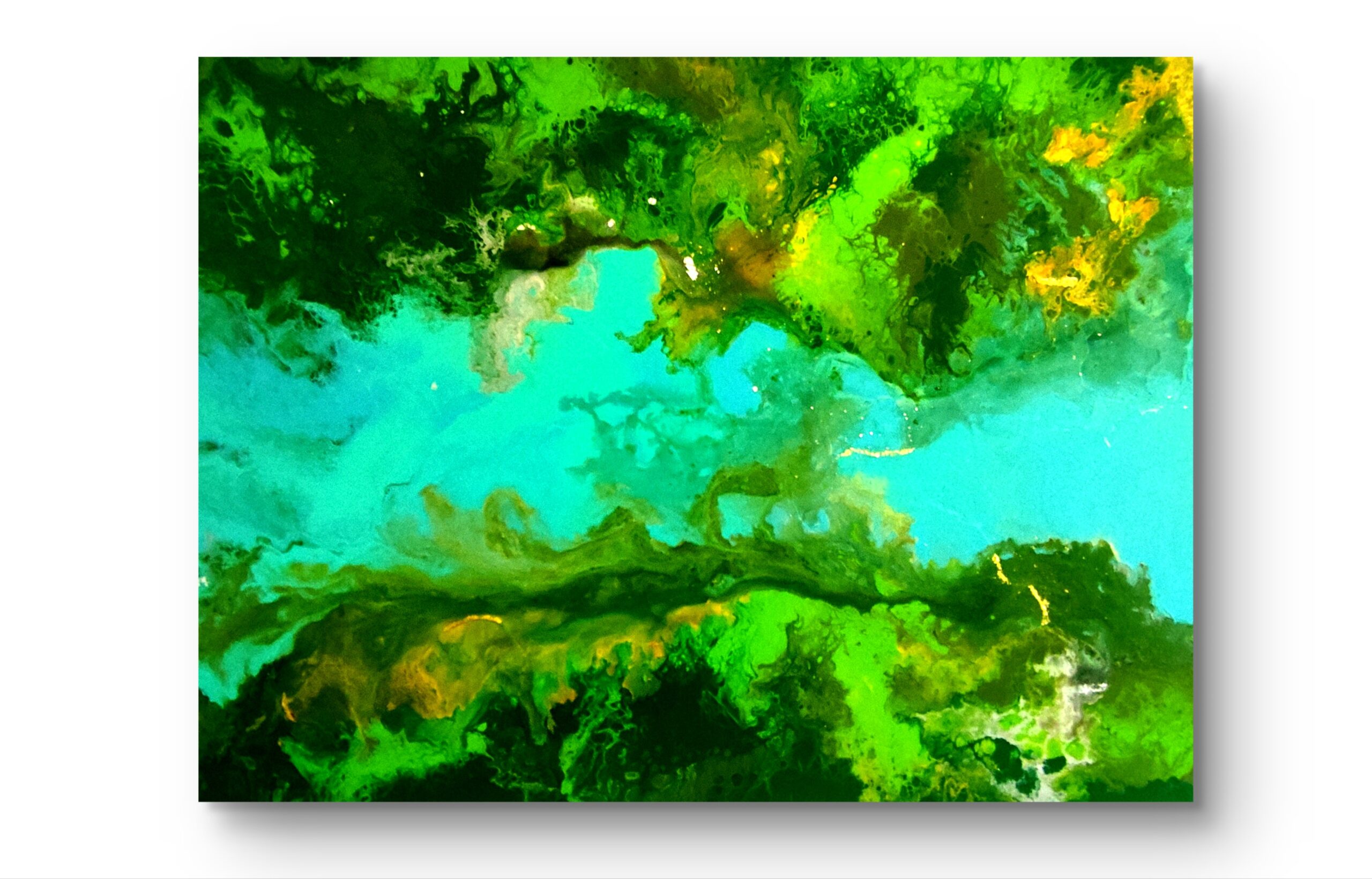 Dans son atelier, Virginie Clément puise son inspiration au cœur des forêts et des grands espaces, laissant la nature nourrir son imaginaire. Elle revendique un processus créatif instinctif : partir d’une image aérienne, en extraire les couleurs et les formes, et leur donner vie sur la toile. À travers son art, elle cherche à provoquer un dialogue intérieur, à offrir un moment suspendu où beauté et conscience se rencontrent.